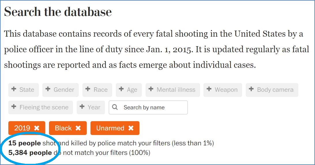 You can get numbers of people that match categories like Black, White, Unarmed.